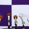 記者会見などでよく見られる市松模様(ステップ&リピート)のデザインは、どの角度から撮影されてもロゴが映り込むメリットがあるものの、視認性には留意が必要です。